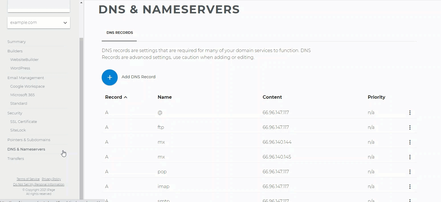 Navigate to Domain List → Manage → Advanced DNS.